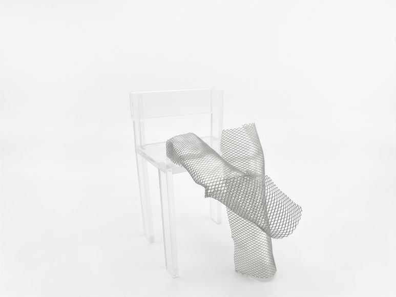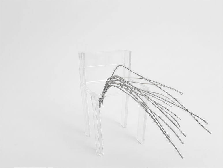 A series of acrylic chair studies that translate my repeated leg-crossing habits into wire and mesh forms.